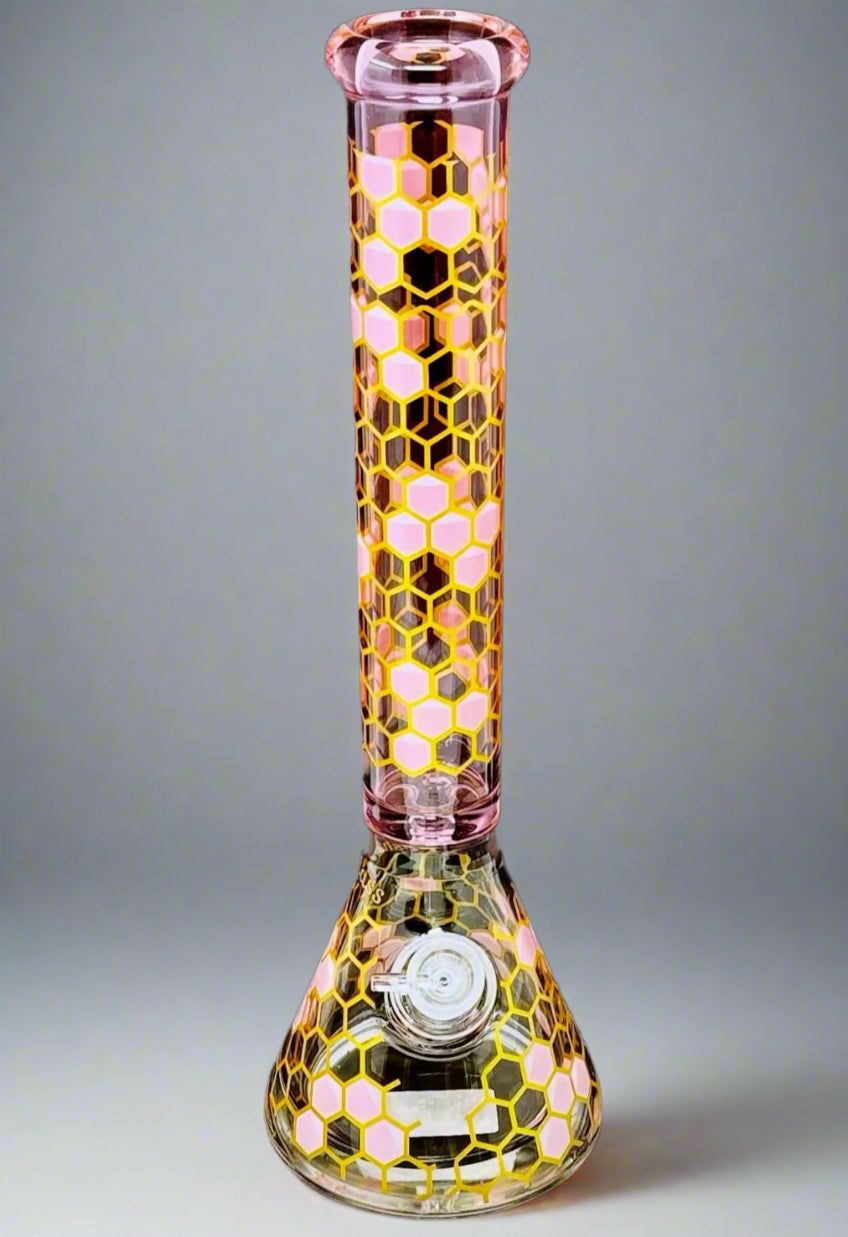 9mm Thick Glass Beaker Bong with Honeycomb Design