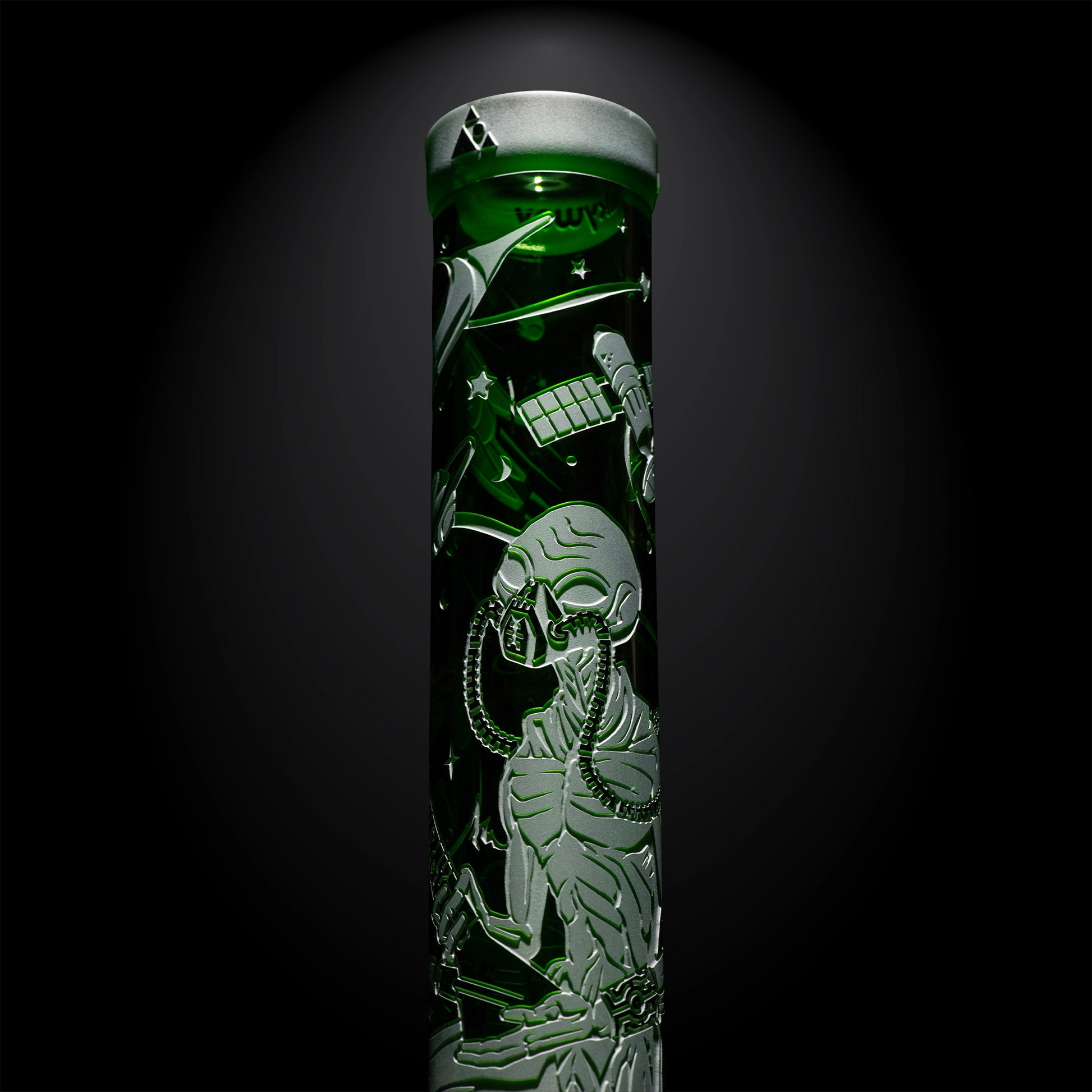 Discover the mesmerizing “Alien Artifacts” from Milkyway's Space Odyssey Collection. This stunning 16-inch piece highlights Arilux, the Pherah scientist, crafted with a double-layer sandblast finish for exquisite detail. Adorned with classic and timeless Space Odyssey graphics, it includes a matching 6-inch Space Odyssey stem and an Orbit bowl. Perfect for collectors and enthusiasts alike, “Alien Artifacts” immerses you in the captivating story of Arilux and the sophisticated Pherah civilization.